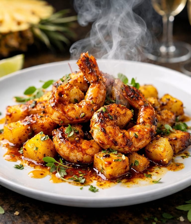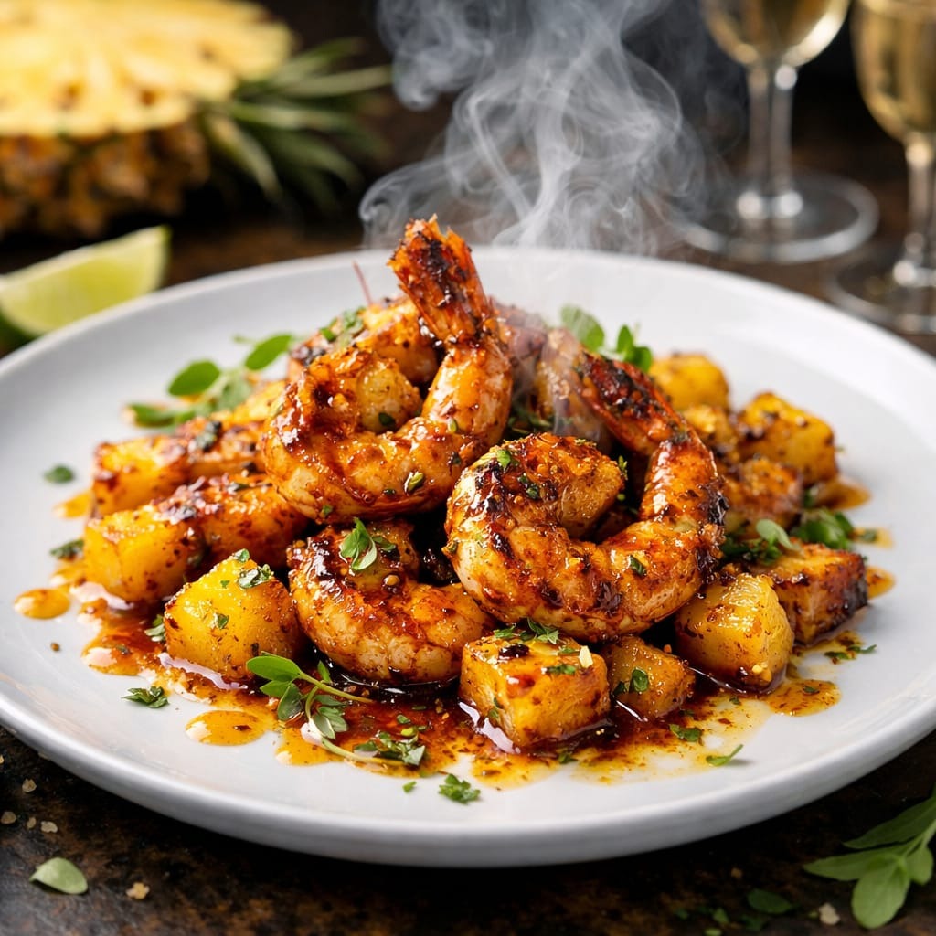 ഒവനോ, ഗ്രില്ലോ ഇല്ലാതെ, ഒരു പാനിൽ തന്നെ തയ്യാറാക്കാവുന്ന ഈ വിഭവത്തിന്റെ പ്രത്യേകത അതിന്റെ ബാലൻസിലാണ്—മസാല കൂടുതല് ആകാതെ, പൈനാപ്പിൾ ചെറുതായി കരമലൈസ് ആകുമ്പോൾ, ചെമ്മീൻ അതിന്റെ ജ്യൂസിനസ് നിലനിർത്തുന്നു. പ്ലേറ്റിൽ വെച്ചാൽ തന്നെ, “ഇത് വീട്ടിൽ തന്നെയാണോ തെയ്യറാക്കിയത് ?” എന്ന ചോദ്യം ഉയർത്തുന്ന, പുതുവത്സരത്തിന്റെ ആദ്യ രാത്രിക്ക് പറ്റിയൊരു ആഡംബര രുചി.