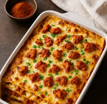 ഇറ്റാലിയൻ ലസാന്യയുടെ ക്രീമി സമൃദ്ധിയിലേക്ക് ഇന്ത്യൻ തന്തൂരിയുടെ ഹൃദ്യമായ രുചി ചേർന്നപ്പോൾ ഉണ്ടാകുന്ന ഒരു മനോഹര ഫ്യൂഷൻ വിഭവമാണ് ഇത്.
