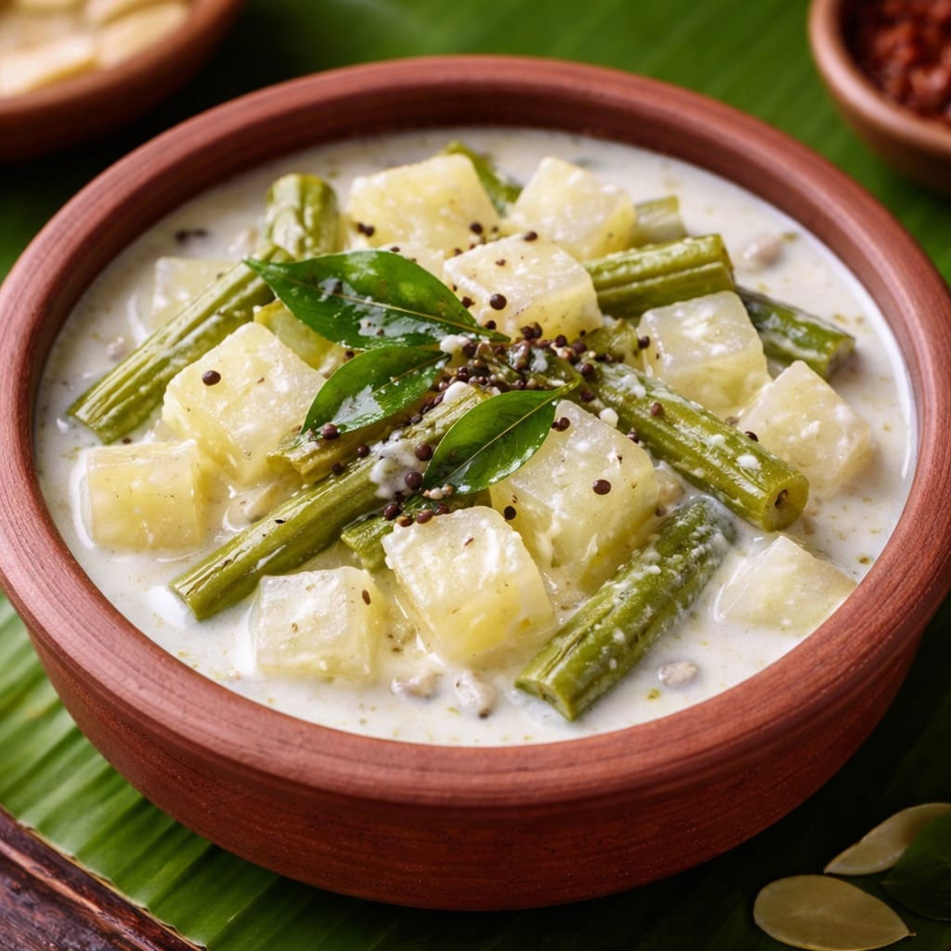 പച്ചക്കറികൾ മഞ്ഞൾ + ഉപ്പ് ചേർത്ത് വേവിക്കുക. തേങ്ങ + പച്ചമുളക് + ജീരകം അരയ്ക്കുക. ഇത് ചേർത്ത് ഇളക്കുക. അവസാനം തൈരും തേങ്ങാ എണ്ണയും ചേർക്കുക
