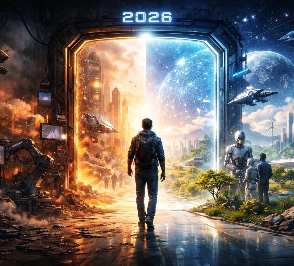 2026 മനുഷ്യരാശിയുടെ ചരിത്രത്തിൽ ഒരു സാധാരണ വർഷമല്ല. ഇത് ഒരു വഴിത്തിരിവാണ് — മനുഷ്യനും സാങ്കേതികതയും തമ്മിലുള്ള ബന്ധം പുനർനിർവചിക്കപ്പെടുന്ന ഘട്ടം. കൃത്രിമബുദ്ധി (Artificial Intelligence) ഇനി പരീക്ഷണശാലകളിലോ സയൻസ് ഫിക്ഷൻ കഥകളിലോ ഒതുങ്ങുന്ന ഒന്നല്ല; ഭരണനിർണ്ണയങ്ങളിലും തൊഴിൽവിപണിയിലും വിദ്യാഭ്യാസരീതികളിലും മനുഷ്യബന്ധങ്ങളിലുമെല്ലാം ഇടപെടുന്ന ഒരു യാഥാർത്ഥ്യ ശക്തിയായി അത് മാറിക്കഴിഞ്ഞിരിക്കുന്നു. AI നമ്മുടെ ചുറ്റും നിശബ്ദമായി പ്രവർത്തിക്കുകയാണ് — നമ്മൾ കാണുന്ന വാർത്തകളിൽ, ഉപയോഗിക്കുന്ന ആപ്പുകളിൽ, തിരഞ്ഞെടുക്കുന്ന ജോലികളിൽ, ചിലപ്പോൾ നമ്മുടെ തീരുമാനങ്ങളിൽ പോലും. ഈ സാഹചര്യത്തിൽ 2026 ഒരു ചോദ്യചിഹ്നം പോലെ മുന്നിൽ നിൽക്കുന്നു: ഈ കവാടം മനുഷ്യനെ മുന്നോട്ടുകൊണ്ടുപോകുമോ, അതോ അവനെ നിയന്ത്രിക്കപ്പെടുന്ന ഒരാളാക്കുമോ? ഈ കവാടം തുറക്കുമ്പോൾ, ഒരുപോലെ ഉയരുന്നത് വലിയ സാധ്യതകളും ആഴമുള്ള ആശങ്കകളുമാണ്.