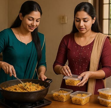 ജോലി, പഠനം, യാത്ര—എല്ലാം കൂടി വീട്ടുകാർ സമയമില്ലാത്തവരും പല വഴിക്കും ആയതോടെ എല്ലാരും സൗകര്യത്തോടെയും വിശ്വാസ്യതയുടെയും ഒരുമിച്ചു ഭക്ഷണം കഴിക്കാൻ ആഗ്രഹിക്കുന്നു. ഈ അവസരമാണ് ഹോം ഫുഡ് ബ്രാൻഡുകൾക്ക് ജനകീയത നൽകിയത്. ഇന്ന് സ്നാക്ക്സ്, പിക്കിൾസ്, ലഞ്ച് ബോക്സ് സെർവിസിസ്, ബാക്കിങ്, മില്ലറ്റ് പ്രോഡക്ടസ്, ബേബി ഫുഡ് മിക്സസ് — എല്ലാം വീട്ടമ്മമാരും യുവതികളും കൈകാര്യം ചെയ്യുന്ന വലിയൊരു മാര്ക്കെറ്റ് ആണ്.